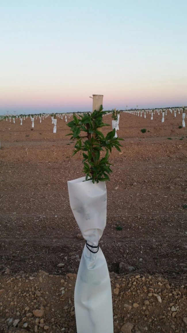 El dos de enero de 2017 se inicia el plantado de la finca 1. Un equipo de trabajo de 40 personas, dirigidas por Jordi Mor, inician la tarea de plantar más de 100.000 árboles en plena ola de frío y una temperature muy baja